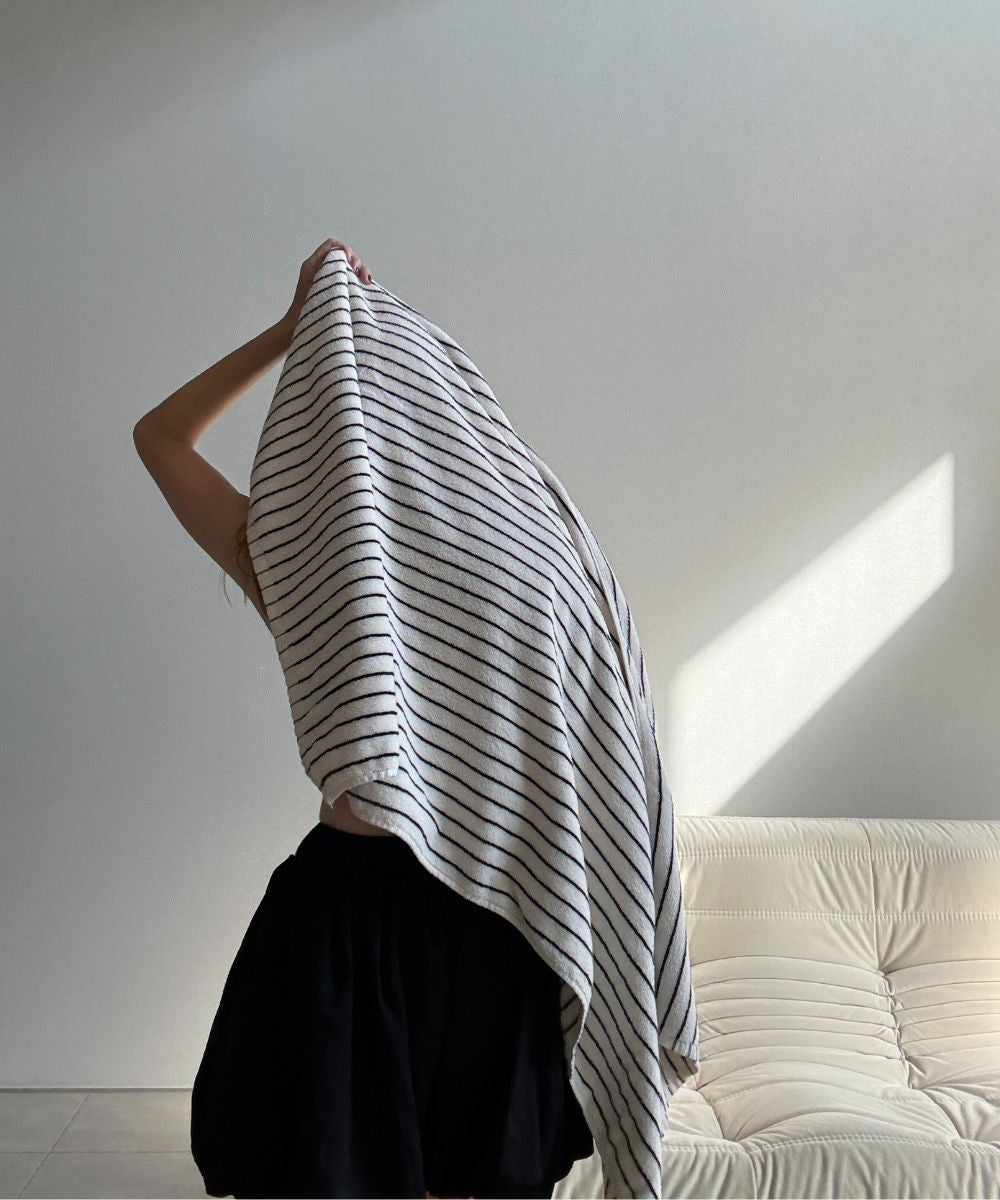 バスタオル(138×73cm)は、お風呂上がりにしっかりと使えるサイズ感。